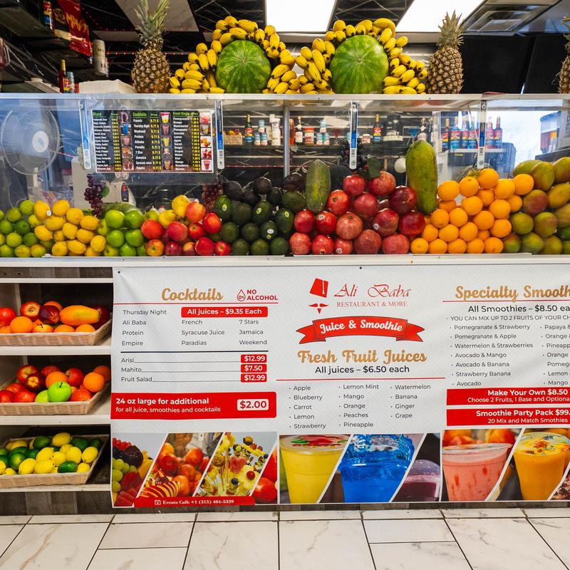 At Ali Baba, we serve flavorful dishes and refreshing smoothies inspired by tradition and made with care. From quick bites to family meals, our focus is simple: quality ingredients, great taste, and welcoming hospitality.